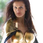 Gold painted breast plate made out of a high impact styrene plastic with gold trim.